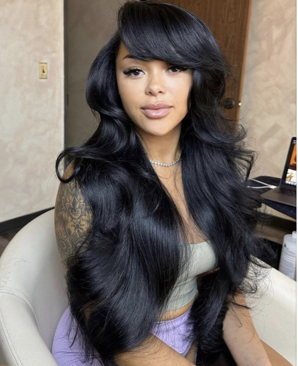 These bangs combine marvelously with short, medium, and long hairstyles. The side fringe mixes well with any type of hair, whether curly, wavy, or straight.