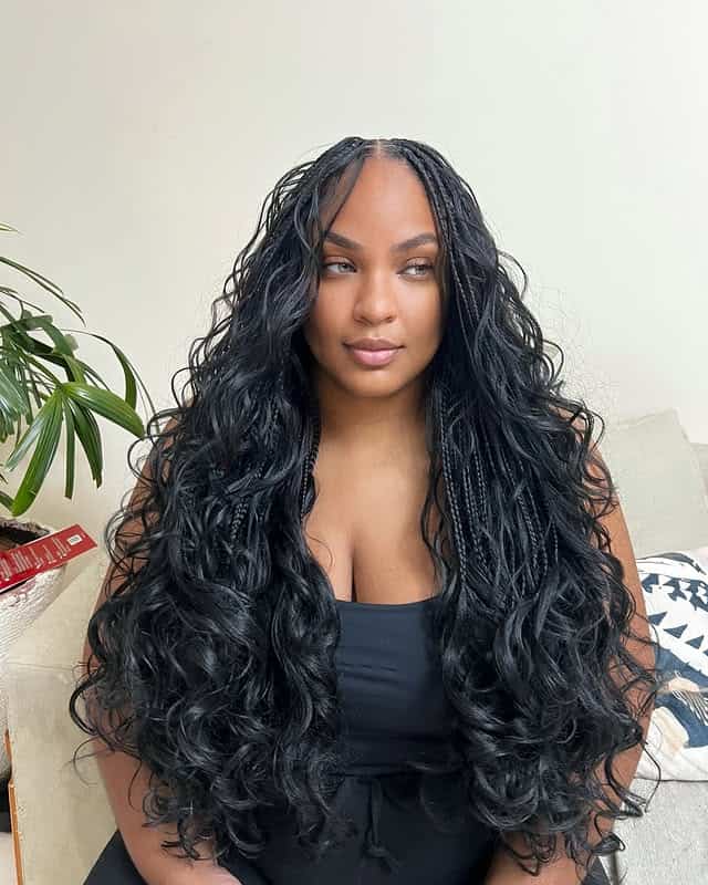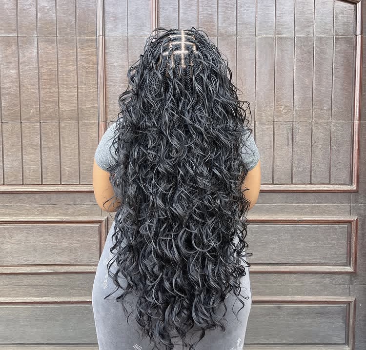 4) Long boho French curl braids