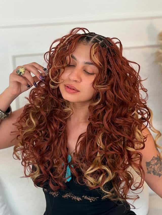 1) Ginger boho French curl braids