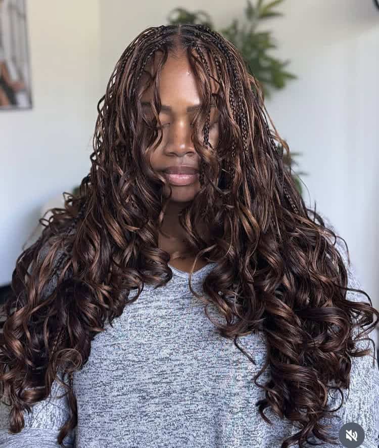 33) Chocolate boho French curl braids