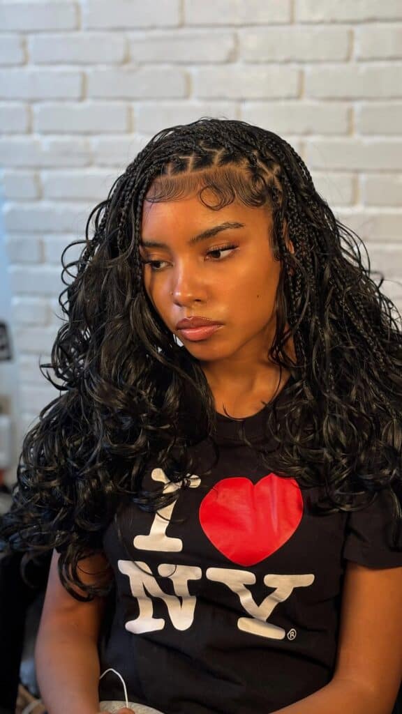 9) Side part boho French curl braids